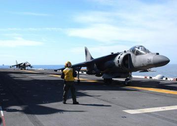 | Keywords: US Navy 070514-N-5033P-324 A Sailor aboard the amphibious assault ship USS Kearsarge (LHD 3) prepare to launch a AV-8B Harrier II from Marine Medium Helicopter Squadron (HMM) 261.jpg en ATLANTIC OCEAN May 14 2007 - A Sailor aboard the amphibious assault ship USS Kearsarge LHD 3 prepare to launch a AV/8B Harrier II from Marine Medium Helicopter Squadron HMM 261 reinforced off the flight deck Kearsarge and embarked 22nd Marine Expeditionary Unit are conducting their Composite Training Unit Exercise in Atlantic Ocean U S Navy photo by Mass Communication Specialist Seaman Derek Poole RELEASED 2007-05-14 070514-N-5033P-324 Navy http //www navy mil/view_image asp id 46129 U S Navy photo by Mass Communication Specialist Seaman Derek Poole PD-USGov-Military-Navy Aboard USS Kearsarge LHD-3 AV-8B Harrier II US Marine Corps |