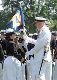 Keywords: US Navy 070524-N-1026O-003 Midshipman 1st Class Jade Baum presents Naval Academy Superintendent Vice Adm. Rodney P. Rempt with the color company guidon during the Naval Academy Color Parade.jpg en ANNAPOLIS Md May 24 2007 - Midshipman 1st Class Jade Baum presents Naval Academy Superintendent Vice Adm Rodney P Rempt with the color company guidon during the Naval Academy Color Parade The Color Parade honors the companies within the Brigade of Midshipmen who excel overall in academics athletics and professional accomplishments The Color Parade is the oldest parade at the U S Naval Academy a tradition that began in 1867 and is the final formal parade prior to graduation and commissioning U S Navy photo by Shannon O Connor RELEASED 2007-05-24 070524-N-1026O-003 Navy http //www navy mil/view_image asp id 46584 U S Navy photo by Shannon O Connor PD-USGov-Military-Navy Taken with Nikon D2Xs Events at the United States Naval Academy Rodney P Rempt |