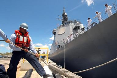 | Keywords: US Navy 070529-N-4965F-002 Hospitalman Justin Frasier, assigned to Arleigh Burke-class guided-missile destroyer USS Hopper (DDG 70), performs line handlers for Japan Maritime Self Defense Force (JMSDF) ship JDS Chokai (DDG 176).jpg JDS Chōkai DDG-176 as she moors pier side at Naval Station NAVSTA Pearl Harbor JMSDF ships Chockai JDS Inazuma DD 105 and JDS Kurama DDH 144 are in port at NAVSTA Pearl Harbor for a port visit while en route to San Diego to conduct training U S Navy photo by Mass Communication Specialist 1st Class James E Foehl RELEASED 2007-05-29 070529-N-4965F-002 Navy http //www navy mil/view_image asp id 46726 U S Navy photo by Mass Communication Specialist 1st Class James E Foehl PD-USGov-Military-Navy JS Chōkai DDG-176 2007 in Pearl Harbor Images from US Navy location Pearl Harbor Hawaii Mooring USS Hopper DDG-70 at Pearl Harbor |