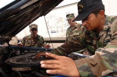 | Keywords: US Navy 070531-N-0989H-054 A Honduran marine checks the engine of a truck during a vehicle inspection as part of the Port Security subject matter exchanges with U.S. Service members.jpg en PUERTO CASTILLAS Honduras May 31 2007 - A Honduran marine checks the engine of a truck during a vehicle inspection as part of the Port Security subject matter exchanges with U S Service members from the Expeditionary Training Command and the Coast Guard International Training Division Task Group 40 9 TG 40 9 is deployed as part of the pilot Global Fleet Station GFS to the Caribbean basin and Central America The mission is designed to validate the GFS concept for the Navy and support U S Southern Command objectives for its area of responsibility by enhancing cooperative partnerships with regional maritime services and improving operational readiness for the participating partner nations U S photo by Mass Communication Specialist 1st Class David Hoffman RELEASED 2007-05-31 070531-N-0989H-054 Navy http //www navy mil/view_image asp id 49027 U S Navy photo PD-USGov-Military-Navy Images from US Navy location Puerto Castilla Honduras |
