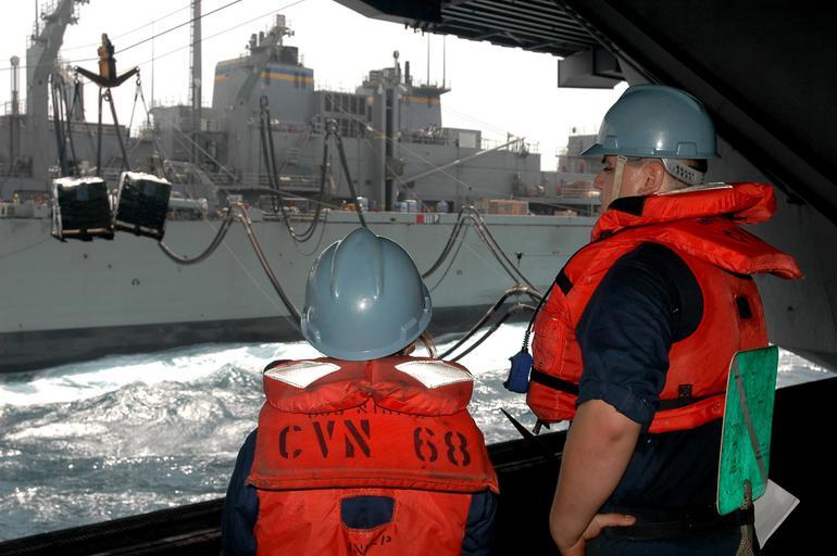 | Keywords: US Navy 070616-N-9760Z-007 Seaman Erik Pardo signals to slow the cargo down while conducting a replenishment at sea with Military Sealift Command fast combat support ship USNS Rainier (T-AOE 7) aboard nuclear-powered aircraft c.jpg  en PERSIAN GULF June 16 2007 Seaman Erik Pardo signals to slow the cargo down while conducting a replenishment at sea with Military Sealift Command fast combat support ship USNS Rainier T-AOE 7 aboard nuclear-powered aircraft carrier USS Nimitz CVN 68 Nimitz Carrier Strike Group and embarked Carrier Air Wing 11 are deployed in the U S 5th Fleet conducting maritime operations and supporting the global war on terrorism U S Navy photo by Mass Communication Specialist 3rd Class Eduardo Zaragoza RELEASED 2007-06-16 070616-N-9760Z-007 Navy http //www navy mil/view_image asp id 47234 U S Navy photo by Mass Communication Specialist 3rd Class Eduardo Zaragoza PD-USGov-Military-Navy Cargo in transfer underway replenishment Aboard USS Nimitz CVN-68  |