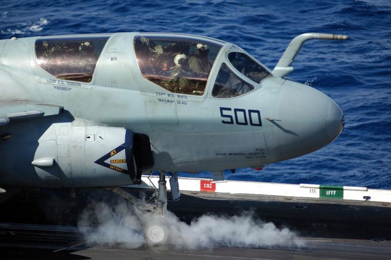 | Keywords: US Navy 070619-N-5387K-017 An EA-6B Prowler assigned to Electronic Attack Squadron (VAQ) 136 launches from the flight deck aboard USS Kitty Hawk (CV 63).jpg en CORAL SEA June 19 2007 - An EA-6B Prowler assigned to Electronic Attack Squadron VAQ 136 launches from the flight deck aboard USS Kitty Hawk CV 63 The EA-6B prowler provides protection for strike aircraft by jamming enemy radar and communications Kitty Hawk Carrier Strike Group is participating in exercise Talisman Saber 2007 in the Coral Sea near the coast of Australia U S Navy photo by Mass Communication Specialist 3rd Class Juan Antoine King RELEASED 2007-06-19 070619-N-5387K-017 Navy http //www navy mil/view_image asp id 47256 U S Navy photo by Mass Communication Specialist 3rd Class Juan Antoine King PD-USGov-Military-Navy Grumman EA-6 Prowler aircraft carrier launches Aboard USS Kitty Hawk CV-63 Talisman Sabre 2007 |