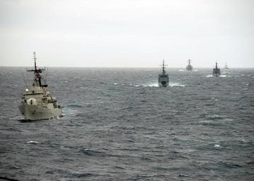 Keywords: US Navy 070623-N-4021H-024 A multi-national photo exercise during UNITAS 48-07 Pacific phase of Partnership of the Americas (POA) 2007.jpg en PACIFIC OCEAN June 23 2007 - Peruvian frigate BAP Palacios FM-56 Chilean frigate CS Almirante Latorre FFG 14 Colombian frigate ARC Independiente FL-54 U S Coast Guard Cutter Mohawk WMEC 913 and guided-missile destroyer USS Mitscher DDG 57 prepare to assume position in a multi-national photo exercise during UNITAS 48-07 Pacific phase of Partnership of the Americas POA 2007 POA is focusing on enhancing relationships with partner nations through a variety of exercises and events at sea and on shore throughout Latin America and the Caribbean U S Navy photo by Mass Communication Specialist 3rd Class Damien Horvath RELEASED 2007-06-23 070623-N-4021H-024 Navy http //www navy mil/view_image asp id 47469 U S Navy photo by Mass Communication Specialist 3rd Class Damien Horvath PD-USGov-Military-Navy International groups of naval ships UNITAS 48-07 Aboard USS Mitscher DDG-57 |