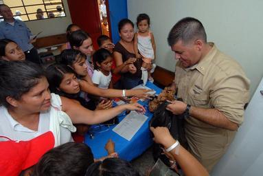 Keywords: US Navy 070630-N-8704K-049 Senior Chief Hospital Corpsman Anthony Aubright, attached to Military Sealift Command hospital ship USNS Comfort (T-AH 20), hands out stuffed animals to children at Medical Center Morales.jpg en MORALES Guatemala June 30 2007 - Senior Chief Hospital Corpsman Anthony Aubright attached to Military Sealift Command hospital ship USNS Comfort T-AH 20 hands out stuffed animals to children at Medical Center Morales Comfort is on a four-month humanitarian deployment to Latin America and the Caribbean to provide medical treatment to patients in a dozen countries While deployed Comfort is under the operational control of U S Naval Forces Southern Command and tactical control of Destroyer Squadron DESRON 24 U S Navy photo by Mass Communication Specialist 2nd Class Joshua Karsten RELEASED 2007-06-30 070630-N-8704K-049 Navy http //www navy mil/view_image asp id 47787 U S Navy photo by Mass Communication Specialist 2nd Class Joshua Karsten PD-USGov-Military-Navy Images from US Navy location Morales Guatemala |