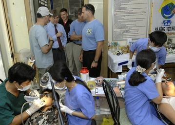 | Keywords: US Navy 070721-N-4954I-183 Jonathan Aloisi, deputy chief of mission of the U.S. Embassy in Hanoi, listens as Capt. Charles Craft, with U.S. Public Health Service, explains the dental work being done at Nai Hiem Dong Medical Sta.jpg  en DA NANG Vietnam July 21 2007 - Jonathan Aloisi deputy chief of mission of the U S Embassy in Hanoi listens as Capt Charles Craft with U S Public Health Service explains the dental work being done at Nai Hiem Dong Medical Station Dental work performed by dentists and clinic volunteers at the medical station are supporting Pacific Partnership 2007 The Vietnamese government is working with Pacific Partnership to facilitate medical dental and engineering assistance programs in the Da Nang area Along with regional partners and non-governmental organizations the Pacific Partnership team is providing the local community with a wide range of assistance U S Navy photo by Mass Communication Specialist 3rd Class Bryan M Ilyankoff RELEASED 2007-07-21 070721-N-4954I-183 Navy http //www navy mil/view_image asp id 48556 U S Navy photo by Mass Communication Specialist 3rd Class Bryan M Ilyankoff PD-USGov-Military-Navy People of Da Nang Son Tra District Health in Da Nang |