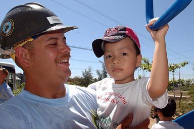 | Keywords: US Navy 070722-N-9421C-143 Equipment Operator 2nd Class Robert Bustos plays with a Vietnamese child on a newly built playground set at Hoi Mai Orphanage during an engineering civic action program in support of Pacific Partnersh.jpg  en DA NANG Vietnam July 22 2007 - Equipment Operator 2nd Class Robert Bustos plays with a Vietnamese child on a newly built playground set at Hoi Mai Orphanage during an engineering civic action program in support of Pacific Partnership 2007 Seabees with Naval Mobile Construction Battalion NMCB 7 and Amphibious Construction Battalion ACB 1 are working at the orphanage in support of Pacific Partnership The Pacific Partnership deployment to Vietnam continues to improve upon bilateral relations between the United States and Vietnam demonstrating our continued commitment to work together to address mutual issues and concerns U S Navy photo by Mass Communication Specialist 2nd Class Kerryl Cacho RELEASED 2007-07-22 070722-N-9421C-143 Navy http //www navy mil/view_image asp id 48584 U S Navy photo by Mass Communication Specialist 2nd Class Kerryl Cacho PD-USGov-Military-Navy Children of Da Nang Hoa Mai Orphanage Relations of the United States and Vietnam Equipment Operator United States Navy  |