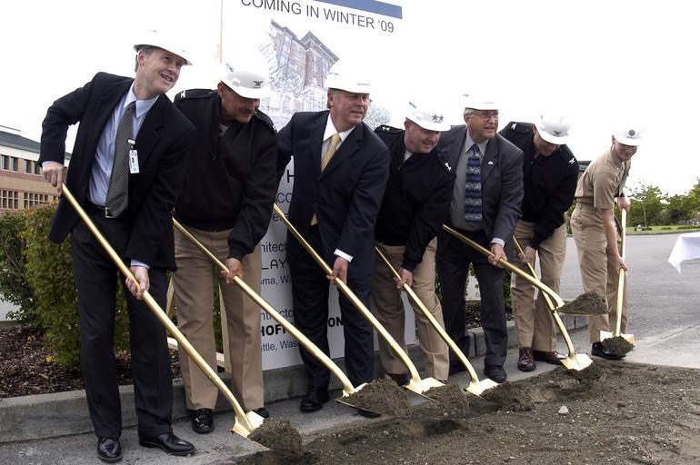 | Keywords: US Navy 070808-N-3390M-001 Ceremony participants onboard Naval Station Everett participate in the P-155 bachelor enlisted quarters Homeport Ashore Groundbreaking Ceremony.jpg en EVERETT Wash Aug 8 2007 - Ceremony participants onboard Naval Station Everett participate in the P-155 bachelor enlisted quarters Homeport Ashore Groundbreaking Ceremony The BEQ will house just over 500 single sailors in 128 fully furnished market style apartments Each unit will be 900 square feet with two double-occupancy bedrooms two full bathrooms a shared living room kitchen and washer and dryer The project is part of the Navy s Homeport Ashore Initiative which is designed to improve the quality of life for young single Sailors by giving them a place to live ashore when their ships are in port U S Navy photo by Mass Communication Specialist 2nd Class Douglas G Morrison RELEASED 2007-08-08 070808-N-3390M-001 Navy http //www navy mil/view_image asp id 49306 U S Navy photo by Mass Communication Specialist 2nd Class Douglas G Morrison PD-USGov-Military-Navy Naval Station Everett Ground-breaking ceremonies |