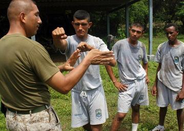 | Keywords: US Navy 070808-N-4021H-123 Gunnery Sgt. Octavio Gonzalez assigned to the dock landing ship USS Pearl Harbor (LSD 52), demonstrates proper self defense striking techniques for Honduran Sailors.jpg  en AMAPALA Honduras Aug 8 2007 - Gunnery Sgt Octavio Gonzalez assigned to the dock landing ship USS Pearl Harbor LSD 52 demonstrates proper self defense striking techniques for Honduran Sailors while participating in a subject matter expert exchange during Partnership of the Americas POA 2007 POA is a Naval Southern Command deployment that focuses on strengthening bonds and fostering new relations with partner nations through various exercises at sea and on shore throughout South America Latin America and the Caribbean U S Navy photo by Mass Communication Specialist 3rd Class Damien Horvath RELEASED 2007-08-08 070808-N-4021H-123 Navy http //www navy mil/view_image asp id 49319 U S Navy photo by Mass Communication Specialist 3rd Class Damien Horvath PD-USGov-Military-Navy Images from US Navy location AMAPALA Honduras |