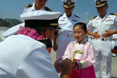 Keywords: US Navy 070818-N-5334H-001 Capt. David A. Lausman, commanding officer of USS Blue Ridge (LCC 19), gives a young Korean girl an honorary ship^rsquo,s coin after receiving a gift of a flower necklace.jpg en CHINHAE Korea Aug 16 2007 - Capt David A Lausman commanding officer of USS Blue Ridge LCC 19 gives a young Korean girl an honorary ship s coin after receiving a gift of a flower necklace The ship is on a short-term deployment in Southeast Asia to support the combined joint computer simulation driven Ulchi Focus Lens exercise involving forces from the United States and Republic of Korea Blue Ridge is the 7th Fleet flagship and is permanently forward deployed to Yokosuka Japan U S Navy photo by Mass Communication Specialist 2nd Class David Hewitt RELEASED 2007-08-16 070818-N-5334H-001 Navy http //www navy mil/view_image asp id 49722 U S Navy photo by Mass Communication Specialist 2nd Class David Hewitt PD-USGov-Military-Navy David Lausman Images from US Navy location Jinhae South Korea |