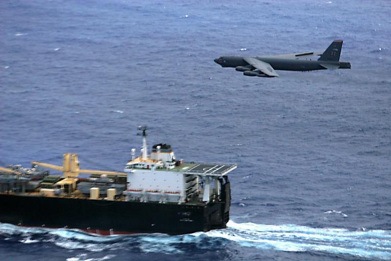 | Keywords: US Navy 070824-F-0000B-002 A B-52H Stratofortress from 2nd Bomb Wing.jpg en GULF OF MEXICO Aug 24 2007 - A B-52H Stratofortress from 2nd Bomb Wing flies over Military Sealift Command maritime prepositioning ship 2nd LT John P Bobo during a maritime intercept training mission U S Air Force photo by Lt Col Ricardo J Beruvides RELEASED 2007-08-24 070824-F-0000B-002 Navy http //www navy mil/view_image asp id 50204 U S Navy photo PD-USGov-Military-Navy Gulf of Mexico | ||||