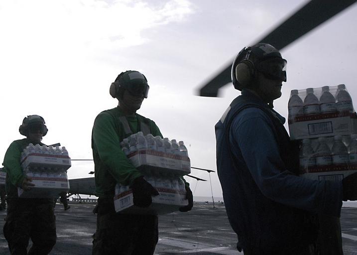 Keywords: US Navy 070907-N-1189B-022 Sailors on board multi-purpose amphibious assault ship USS Wasp (LHD 1), load bottled water onto an MH-60S Seahawk assigned to Helicopter Sea Combat Squadron (HSC) 28.jpg en PUERTO CABEZAS Nicaragua Sept 7 2007 - Sailors on board multi-purpose amphibious assault ship USS Wasp LHD 1 load bottled water onto an MH-60S Seahawk assigned to Helicopter Sea Combat Squadron HSC 28 Wasp Sailors are providing disaster relief in Nicaragua after Hurricane Felix made landfall Sept 4 U S Southern Command diverted Wasp from an international maritime exercise in Panama to the coast of Nicaragua Sept 5 to assist with disaster relief efforts in areas affected by Hurricane Felix U S Navy photo by Mass Communication Specialist 2nd Class Zachary Borden RELEASED 2007-09-07 070907-N-1189B-022 Navy http //www navy mil/view_image asp id 50539 U S Navy photo by Mass Communication Specialist 2nd Class Zachary Borden PD-USGov-Military-Navy Images from US Navy location PUERTO CABEZAS Nicaragua USS Wasp LHD-1 flight deck Impact of Hurricane Felix in Nicaragua Helicopter Sea Combat Squadron 28 United States Navy