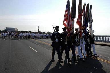 Keywords: US Navy 070909-N-3642E-149 A military color guard leads America Supports You National Freedom Walk participants over the Memorial Bridge, toward Arlington, Va.jpg en WASHINGTON Sept 9 2007 - A military color guard leads America Supports You National Freedom Walk participants over the Memorial Bridge toward Arlington Va The third annual walk commemorated the victims of the Sept 11th terrorist attack and honored military veterans past and present U S Navy photo by Chief Mass Communication Specialist Shawn P Eklund RELEASED 2007-09-09 070909-N-3642E-149 Navy http //www navy mil/view_image asp id 50721 U S Navy photo by Chief Mass Communication Specialist Shawn P Eklund PD-USGov-Military-Navy Arlington Memorial Bridge America Supports You Color guards of the United States Photographs of military flags of the United States Sixth anniversary of the September 11 2001 attacks |