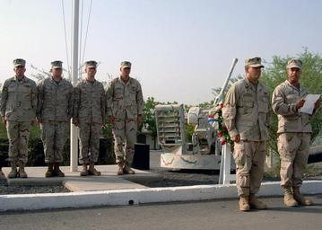 Keywords: US Navy 070911-N-3285B-138 Members of the color guard stand by as Electronics Technician 1st Class Arcenet Vazquez shares a few words after presenting a wreath in remembrance of the sixth anniversary of the Sept. 11 terrorist a.jpg en CAMP LEMONIER Djibouti Sept 11 2007 - Members of the color guard stand by as Electronics Technician 1st Class Arcenet Vazquez shares a few words after presenting a wreath in remembrance of the sixth anniversary of the Sept 11 terrorist attack The wreath presentation was one of the Sept 11 remembrance events on Camp Lemonier U S Navy photo by Mass Communication Specialist 2nd Class Regina L Brown RELEASED 2007-09-11 070911-N-3285B-138 Navy http //www navy mil/view_image asp id 50762 U S Navy photo by Mass Communication Specialist 2nd Class Regina L Brown PD-USGov-Military-Navy Camp Lemonnier Sixth anniversary of the September 11 2001 attacks |