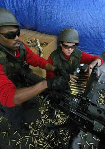 | Keywords: US Navy 070920-N-3143M-062 Sailors load ammunition into a mounted .50-caliber machine gun during a training exercise aboard Nimitz-class aircraft carrier USS Harry S. Truman (CVN 75).jpg en ATLANTIC OCEAN Sept 20 2007 - Sailors load ammunition into a mounted 50-caliber machine gun during a training exercise aboard Nimitz-class aircraft carrier USS Harry S Truman CVN 75 Truman is underway in the Atlantic Ocean conducting carrier qualifications U S Navy photo by Mass Communication Specialist 3rd Class Damian Martinez RELEASED 2007-09-20 070920-N-3143M-062 Navy http //www navy mil/view_image asp id 51119 U S Navy photo by Mass Communication Specialist 3rd Class Damian Martinez PD-USGov-Military-Navy Browning M2 of the US Navy Aboard USS Harry S Truman CVN-75 Cartridge cases |