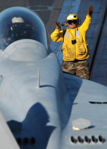Keywords: US Navy 070926-N-1229B-149 An aviation boatswain's mate lines up an F-A-18C Hornet to be launched off of a steam catapult aboard Nimitz-class aircraft carrier USS Abraham Lincoln (CVN 72).jpg en PACIFIC OCEAN Sept 26 2007 - An aviation boatswain's mate lines up an F/A-18C Hornet to be launched off of a steam catapult aboard Nimitz-class aircraft carrier USS Abraham Lincoln CVN 72 Lincoln is underway off the coast of Southern California conducting Fleet Replacement Squadron Carrier Qualification to certify new pilots to launch and recover aircraft aboard a carrier at sea U S Navy photo by Mass Communication Specialist 3rd Class Patrick Bonafede RELEASED 2007-09-26 070926-N-1229B-149 Navy http //www navy mil/view_image asp id 51394 U S Navy photo by Mass Communication Specialist 3rd Class Patrick Bonafede PD-USGov-Military-Navy Aviation Boatswain's Mates Handlers Aboard USS Abraham Lincoln CVN-72 |