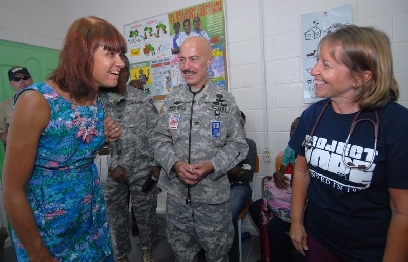 | Keywords: US Navy 071003-N-6081J-116 At the Zanderij Health Clinic, Lisa Bobbie Schreiber Hughes, U.S. Ambassador to Suriname, speaks to Kris McHarg, a registered nurse volunteer with the non-governmental organization Project Hope.jpg en PARA Suriname Oct 3 2007 - At the Zanderij Health Clinic Lisa Bobbie Schreiber Hughes U S Ambassador to Suriname speaks to Kris McHarg a registered nurse volunteer with the non-governmental organization Project Hope attached to Military Sealift Command hospital ship USNS Comfort T-AH 20 Comfort is on a four-month humanitarian deployment to Latin America providing medical treatment to patients in a dozen countries U S Navy photo by Mass Communication Specialist 3rd Class Tyler Jones RELEASED 2007-10-03 071003-N-6081J-116 Navy http //www navy mil/view_image asp id 51560 U S Navy photo by Mass Communication Specialist 3rd Class Tyler Jones PD-USGov-Military-Navy Images from US Navy location PARA Suriname Lisa Bobbie Schreiber Hughes |