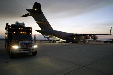 Keywords: US Navy 071024-N-8391L-047 An Air Force C-17 Globemaster III attached to the 452nd Air Mobility Wing stationed on board March Air Reserve Base, unloads members and equipment from the 5th Army Operational Command Post Two.jpg en RIVERSIDE Calif Oct 24 2007 - An Air Force C-17 Globemaster III attached to the 452nd Air Mobility Wing stationed on board March Air Reserve Base unloads members and equipment from the 5th Army Operational Command Post Two out of San Antonio Texas as part of a federal support package used to assist federal state and local agencies responding to the California wildfires U S Navy photo by Mass Communication Specialist 1st Class Troy Latham RELEASED 2007-10-24 071024-N-8391L-047 Navy http //www navy mil/view_image asp id 52169 U S Navy photo by Mass Communication Specialist 1st Class Troy Latham PD-USGov-Military-Navy Images from US Navy location RIVERSIDE Calif |