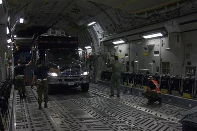 Keywords: US Navy 071024-N-8732S-055 An Air Force C-17 Globemaster III attached to the 452nd Air Mobility Wing stationed on board March Air Reserve Base, unloads members and equipment from the 5th Army Operational Command Post Two.jpg en RIVERSIDE Calif Oct 24 2007 - An Air Force C-17 Globemaster III attached to the 452nd Air Mobility Wing stationed on board March Air Reserve Base unloads members and equipment from the 5th Army Operational Command Post Two out of San Antonio Texas as part of a federal support package used to assist federal state and local agencies responding to the California wildfires U S Navy photo by Chief Mass Communication Specialist Michael A Strand RELEASED 2007-10-24 071024-N-8732S-055 Navy http //www navy mil/view_image asp id 52170 U S Navy photo by Chief Mass Communication Specialist Michael A Strand PD-USGov-Military-Navy Images from US Navy location RIVERSIDE Calif 2007 Wildfires in California Transport of vehicles by Boeing C-17 Globemaster III Transport of trucks by aircraft International DuraStar |