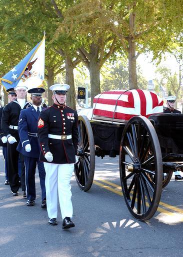 | Keywords: US Navy 071031-N-5215E-036 Pallbearers escort the caisson during funeral procession for former Chairman of the Joint Chiefs of Staff, Adm. William J. Crowe, at the U.S. Naval Academy Cemetery.jpg en ANNAPOLIS Md Oct 31 2007 - Pallbearers escort the caisson during funeral procession for former Chairman of the Joint Chiefs of Staff Adm William J Crowe at the U S Naval Academy Cemetery Crowe who died Oct 18 at the age of 82 was buried alongside his friend and classmate Vice Adm James B Stockdale Chairman of the Joint Chiefs of Staff Adm Michael G Mullen and former President William Clinton spoke at Crowe's service in the Naval Academy Chapel U S Navy photo by Mass Communication Specialist Seaman Matthew A Ebarb RELEASED 2007-10-31 071031-N-5215E-036 Navy http //www navy mil/view_image asp id 52347 U S Navy photo by Mass Communication Specialist Seaman Matthew A Ebarb PD-USGov-Military-Navy United States Naval Academy Cemetery William J Crowe Jr Personal flags of the United States Department of Defense |