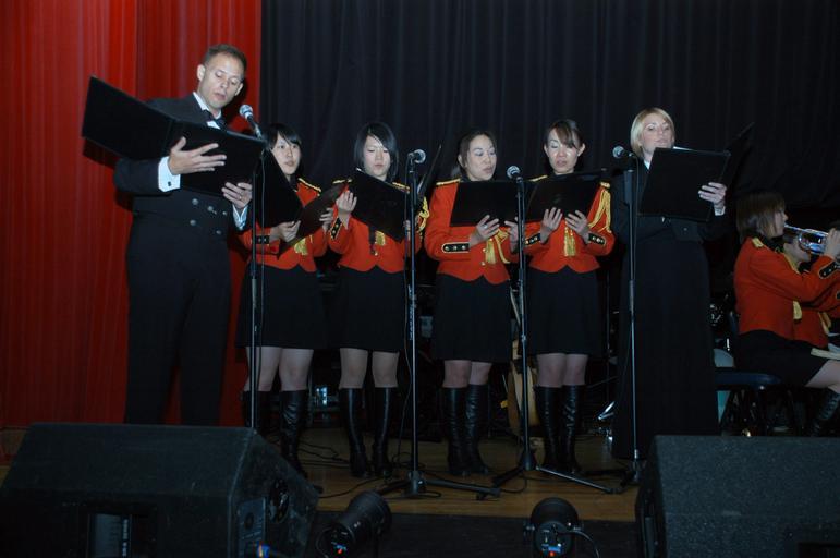| Keywords: US Navy 071208-N-2746V-001 Musician 3rd Class Spencer Haasenritter, left, and Musician 3rd Class Jessica Hatfield of the U.S. 7th Fleet Band, sing with members of the Japan Maritime Self Defense Force Band.jpg en YOKOSUKA Japan Dec 8 2007 Musician 3rd Class Spencer Haasenritter left and Musician 3rd Class Jessica Hatfield of the U S 7th Fleet Band sing with members of the Japan Maritime Self Defense Force Band during a holiday concert The concert held at Yokosuka's Fleet Theater was part of the Grand Illumination the first-ever holiday open base event held at Commander Fleet Activities Yokosuka U S Navy photo by Mass Communication Specialist 2nd Class Adam Vernon Released 2007-12-08 071208-N-2746V-001 Navy http //www navy mil/view_image asp id 53751 U S Navy photo by Mass Communication Specialist 2nd Class Adam Vernon United States Fleet Activities Yokosuka Musician United States Navy JMSDF Military bands PD-USGov-Military-Navy |