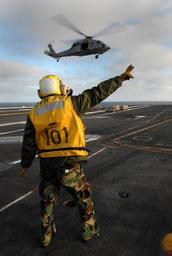 | Keywords: US Navy 080109-N-0640K-005 Aviation Boatswain's Mate (Handling) 3rd Class Alexis Fernandez directs an MH-60S Seahawk helicopter, assigned to the.jpg en PACIFIC OCEAN Jan 9 2008 Aviation Boatswain's Mate Handling 3rd Class Alexis Fernandez directs an MH-60S Seahawk helicopter assigned to the Blackjacks of Helicopter Sea Combat Squadron HSC 21 during an ammunition on load aboard the Nimitz-class nuclear-powered aircraft carrier USS Ronald Reagan CVN 76 Ronald Reagan is underway in the Pacific Ocean conducting routine carrier operations U S Navy photo by Mass Communication Specialist 2nd Class Jennifer S Kimball Released 2008-01-09 080109-N-0640K-005 Navy http //www navy mil/view_image asp id 54377 U S Navy photo by Mass Communication Specialist 2nd Class Jennifer S Kimball PD-USGov-Military-Navy Aviation Boatswain's Mates Handlers Flight deck of USS Ronald Reagan CVN-76 MH-60S Seahawk Helicopter Sea Combat Squadron 21 United States Navy |