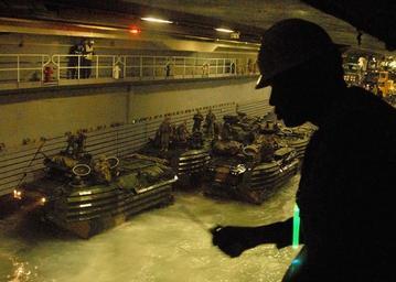 | Keywords: US Navy 080211-N-5067K-096 Chief Boatswain's Mate Alan N. Daniel directs the recovery of amphibious assault vehiclesin the well deck of USS Juneau (LPD 10).jpg  en PACIFIC OCEAN Feb 11 2008 Chief Boatswain's Mate Alan N Daniel directs the recovery of amphibious assault vehicles from Golf Co Battalion Landing Team 2nd Battalion 4th Marines BLT 2/4 of the 31st Marine Expeditionary Unit MEU in the well deck of USS Juneau LPD 10 Juneau and the 31st MEU are participating in the amphibious integration training exercise EVALEX '08 Juneau is the Navy's only permanently forward deployed amphibious transport dock ship and part of the Essex Expeditionary Strike Group forward deployed to Sasebo Japan U S Navy photo by Mass Communication Specialist 1st Class Michael D Kennedy Released 2008-02-11 080211-N-5067K-096 Navy http //www navy mil/view_image asp id 55157 U S Navy photo by Mass Communication Specialist 1st Class Michael D Kennedy PD-USGov-Military-Navy Aboard USS Juneau LPD-10 Amphibious Assault Vehicle Well decks 4th Marine Regiment United States |