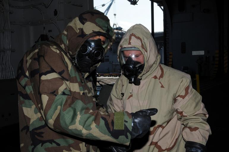 | Keywords: US Navy 080617-N-9774H-012 Mass Communication Specialist 3rd Class William Parker and Damage Controlman 3rd Class Jeffrey Flagstead participate in the chemical, biological, radiological (CBR) dress out event during the Damage C.jpg  en NORFOLK Va June 17 2008 Mass Communication Specialist 3rd Class William Parker and Damage Controlman 3rd Class Jeffrey Flagstead participate in the chemical biological radiological CBR dress out event during the Damage Control Marathon portion of Surface Line Week 2008 held aboard the amphibious assault ship USS Kearsarge LHD3 Surface Line Week is a weeklong series of competitive events during which Hampton Roads-area surface warriors show off their professional and athletic prowess It is an opportunity to promote greater coordination and communication among surface warriors to build esprit de corps and camaraderie and to recognize professional excellence across the force U S Navy photo by Mass Communication Specialist 1st Class Emmitt J Hawks Released 2008-06-17 080617-N-9774H-012 Navy http //www navy mil/view_image asp id 60474 U S Navy photo by Mass Communication Specialist 1st Class Emmitt J Hawks PD-USGov-Military-Navy Naval Station Norfolk Aboard USS Kearsarge LHD-3 Mass Communication Specialist Military protective clothing People wearing gas masks MCU-2/P Protective Mask |