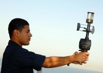 Keywords: US Navy 080627-N-9604C-031 An aerographer's mate uses a hand held anemometer to check wind direction and speed from the flight deck aboard the amphibious assault ship USS Peleliu (LHA 5).jpg en PERSIAN GULF June 27 2008 An aerographer's mate uses a hand held anemometer to check wind direction and speed from the flight deck aboard the amphibious assault ship USS Peleliu LHA 5 Peleliu is currently deployed supporting maritime security operations in the Navy's 5th Fleet area of responsibility U S Navy photo by Mass Communication Specialist Seaman Shannon K Cassidy Released 2008-06-27 080627-N-9604C-031 Navy http //www navy mil/view_image asp id 60869 U S Navy photo by Mass Communication Specialist Seaman Shannon K Cassidy PD-USGov-Military-Navy Anemometers Aerographer's Mate Aboard USS Peleliu LHA-5 |