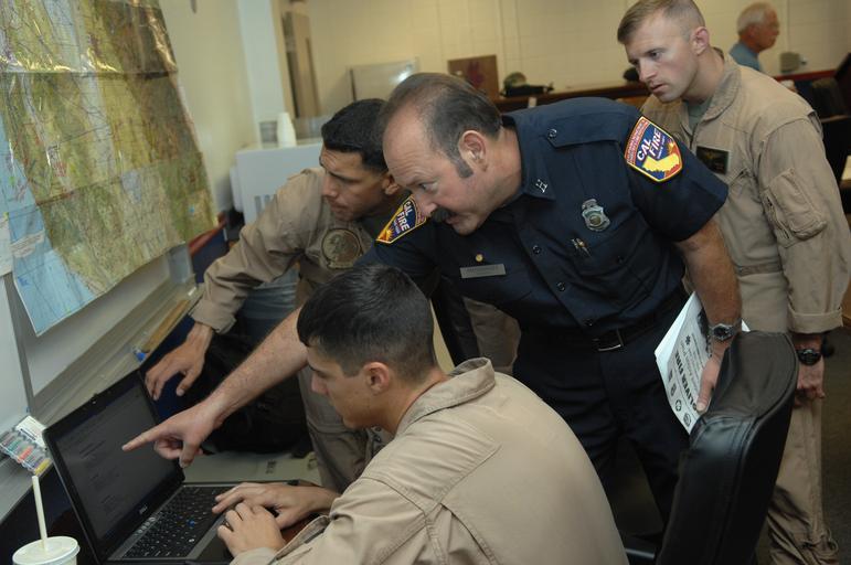 | Keywords: US Navy 080630-F-1689G-006 Marines assigned to Marine Medium Helicopter Training Squadron (HMMT) 164 and Marine Medium Helicopter Squadron (HMM) 268 review flight plans with Fire Chief Jim Gonzalez.jpg  en March Air Force Base Calif June 30 2008 Marines assigned to Marine Medium Helicopter Training Squadron HMMT 164 and Marine Medium Helicopter Squadron HMM 268 review flight plans with Fire Chief Jim Gonzalez aviation military liaison with the California Department of Forestry and Fire Protection The units are conducting firefighting support operations in northern California as part of the 302nd Air Expeditionary Group U S Air Force photo by Staff Sgt Hector Garcia Released 2008-06-30 080630-F-1689G-006 Navy http //www navy mil/view_image asp id 60978 U S Navy photo PD-USGov-Military-Navy March Air Reserve Base Marine Medium Helicopter Squadron 268 Marine Medium Helicopter Squadron 164 Firefighters in California People using computers in the 2000s Dell Latitude Flight plans March Air Force Base Pre-flight briefing |