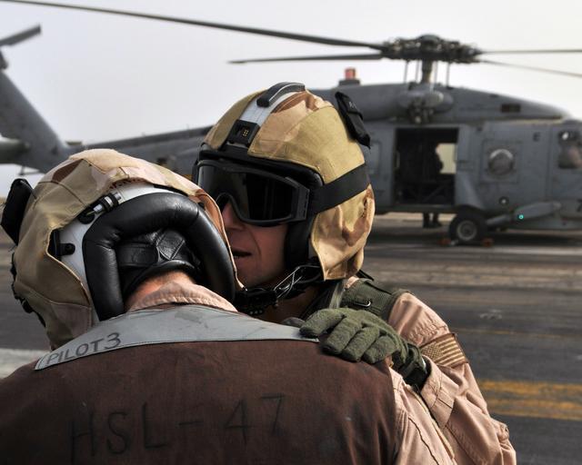 Keywords: US Navy 080702-N-7981E-087 Chief Aviation Warfare Systems Operator Robert Abplanalp, assigned to the.jpg en PERSIAN GULF July 2 2008 Chief Aviation Warfare Systems Operator Robert Abplanalp assigned to the Saberhawks of Helicopter Anti-submarine Squadron Light HSL 47 communicates with a pilot as they prepare an SH-60B Seahawk for an aerial change of command ceremony on the flight deck of the Nimitz-class aircraft carrier USS Abraham Lincoln CVN 72 Lincoln is deployed to the U S 5th Fleet area of responsibility supporting maritime security operations U S Navy photo by Mass Communications Specialist 2nd Class James R Evans Released 2008-07-02 080702-N-7981E-087 Navy http //www navy mil/view_image asp id 61058 U S Navy photo by Mass Communications Specialist 2nd Class James R Evans PD-USGov-Military-Navy Aviation Warfare Systems Operator Aboard USS Abraham Lincoln CVN-72 Change of command |