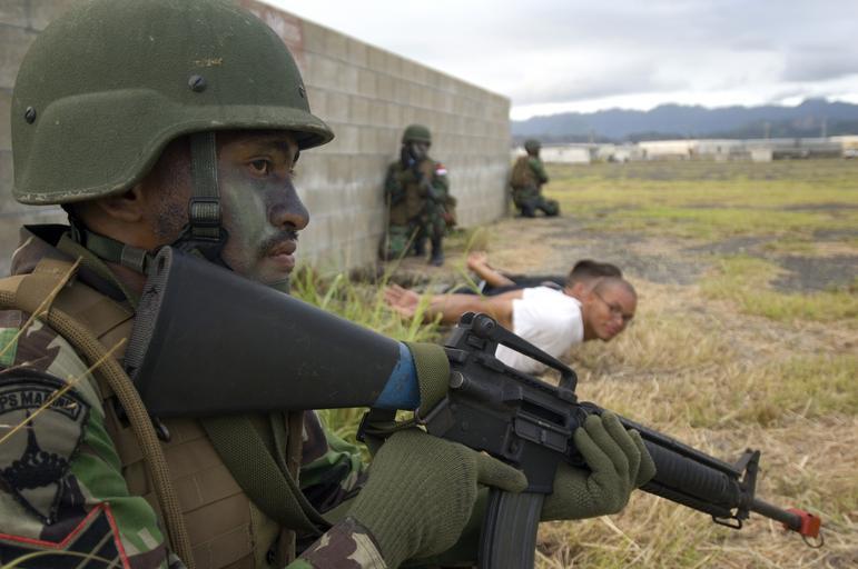 Keywords: US Navy 080727-N-6430R-022 Indonesian marines conduct a practice weapons cache raid with U.S. Marines.jpg en KANEOHE Hawaii July 27 2008 Indonesian marines conduct a practice weapons cache raid with U S Marines assigned to 3rd Assault Amphibian Battalion during Rim of the Pacific RIMPAC 2008 RIMPAC is the world's largest multinational exercise and is scheduled biennially by the U S Pacific Fleet Participants include the United States Australia Canada Chile Japan the Netherlands Peru Republic of Korea Singapore and the United Kingdom U S Navy photo by Mass Communication Specialist Third Class Thomas L Rosprim/Released 2008-07-27 080727-N-6430R-022 Navy http //www navy mil/view_image asp id 62016 U S Navy photo by Mass Communication Specialist Third Class Thomas L Rosprim PD-USGov-Military-Navy Marine Corps Base Hawaii RIMPAC 2008 Camouflage facepainting Males with M16 rifle Republic of Indonesia Marine Corps |