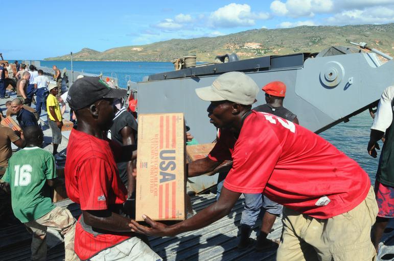Keywords: US Navy 080922-N-7955L-118 Haitian civilians help move boxes of cooking oil delivered by U.S. service members embarked aboard the amphibious assault ship USS Kearsarge (LHD 3) during a humanitarian assistance mission.jpg en GONAIVES Haiti September 22 2008 Haitian civilians help move boxes of cooking oil delivered by U S service members embarked aboard the amphibious assault ship USS Kearsarge LHD 3 during a humanitarian assistance mission Kearsarge has been diverted from the scheduled Continuing Promise 2008 humanitarian assistance deployment in the western Caribbean to conduct hurricane relief operations in Haiti U S Navy photo by Mass Communication Specialist 3rd Class Christopher Lange Released 2008-09-22 080922-N-7955L-118 Navy http //www navy mil/view_image asp id 64363 U S Navy photo by Mass Communication Specialist 3rd Class Christopher Lange PD-USGov-Military-Navy Port of Gonaïves Humanitarian aid in Gonaïves Transport in Gonaïves Ships in Gonaïves People of Gonaïves Military people of the United States in Gonaïves Aboard USS Kearsarge LHD-3 2008 in Gonaïves 0922 September 2008 in Haiti 22 |