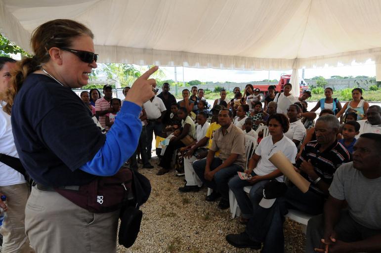 Keywords: US Navy 081009-N-9774H-109 Nancy Foote holds a question and answer seminar.jpg en BAYAGUANA Dominican Republic Oct 9 2008 Nancy Foote Project Hope coordinator embarked aboard the amphibious assault ship USS Kearsarge LHD 3 holds a question and answer seminar with local residents about health care Kearsarge is the primary platform for the Caribbean phase of the humanitarian/civic assistance mission CP 2008 an equal-partnership mission involving the United States Canada the Netherlands Brazil France Nicaragua Colombia Dominican Republic Trinidad and Tobago and Guyana U S Navy photo by Mass Communication Specialist 1st Class Emmitt J Hawks/Released 2008-10-09 081009-N-9774H-109 Navy http //www navy mil/view_image asp id 65129 U S Navy photo by Mass Communication Specialist 1st Class Emmitt J Hawks PD-USGov-Military-Navy Images from US Navy location Bayaguana Dominican Republic |