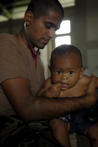 | Keywords: US Navy 081015-N-1508S-156 Lt. Cmdr. Sugat Patel, a doctor embarked aboard the amphibious assault ship USS Kearsarge (LHD 3), provides medical care to a Dominican child.jpg en BAYAGUANA Dominican Republic Oct 15 2008 Lt Cmdr Sugat Patel a doctor embarked aboard the amphibious assault ship USS Kearsarge LHD 3 provides medical care to a Dominican child at the Bayaguana Sports Complex supporting the humanitarian/civic assistance mission Continuing Promise CP 2008 Kearsarge is the primary platform for the Caribbean phase of the humanitarian assistance mission Continuing Promise 2008 an equal-partnership mission involving the United States Canada the Netherlands Brazil France Nicaragua Colombia Dominican Republic Trinidad and Tobago and Guyana U S Navy photo by Mass Communication Specialist Seaman Ernest Scott/Released 2008-10-15 081015-N-1508S-156 Navy http //www navy mil/view_image asp id 65397 U S Navy photo by Mass Communication Specialist Seaman Ernest Scott PD-USGov-Military-Navy Images from US Navy location Bayaguana Dominican Republic |