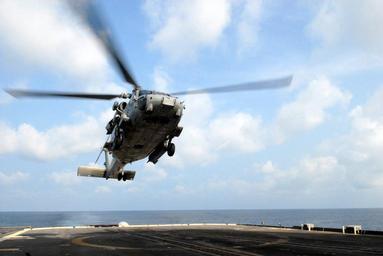 | Keywords: US Navy 081020-N-1635S-011 An SH-60F Seahawk helicopter assigned to the.jpg  en INDIAN OCEAN Oct 20 2008 An SH-60F Seahawk helicopter assigned to the Black Knights of Helicopter Anti-Submarine Squadron HS 4 lands aboard the Ticonderoga-class guided-missile cruiser USS Chancellorsville CG 62 with Rear Adm Anil Chopra flag officer in command of the Indian Navy's western fleet Indian Navy sailors visited Chancellorsville as part of the Malabar 2008 exercise to learn about U S warship capabilities U S Navy photo by Mass Communication Specialist 3rd Class Joshua Scott/Released 2008-10-20 081020-N-1635S-011 Navy http //www navy mil/view_image asp id 65575 U S Navy photo by Mass Communication Specialist 3rd Class Joshua Scott PD-USGov-Military-Navy USS Chancellorsville CG-62 |