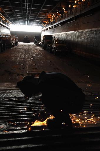Keywords: US Navy 081111-N-8907D-231 Hull technician Fireman Matt Tully, assigned to the amphibious assault ship USS Kearsarge (LHD 3), repairs the ramp leading to the well deck.jpg en ATLANTIC OCEAN Nov 11 2008 Hull technician Fireman Matt Tully assigned to the amphibious assault ship USS Kearsarge LHD 3 repairs the ramp leading to the well deck Kearsarge is supporting the Caribbean Phase of the humanitarian and civic assistance mission Continuing Promise 2008 an equal partnership mission between the United States Canada the Netherlands Brazil Nicaragua Colombia Dominican Republic Trinidad and Tobago and Guyana U S Navy photo by Mass Communication Specialist 3rd Class David Danals/Released 2008-11-11 081111-N-8907D-231 Navy http //www navy mil/view_image asp id 66433 U S Navy photo by Mass Communication Specialist 3rd Class David Danals PD-USGov-Military-Navy Aboard USS Kearsarge LHD-3 Well decks