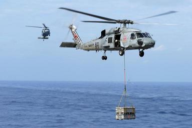 Keywords: US Navy 081114-N-9132C-154 An aircrewman looks down from a SH-60F Sea Hawk.jpg en PACIFIC OCEAN Nov 14 2008 An aircrewman assigned to Helicopter Anti-Submarine Squadron HS 4 looks down from a SH-60F Sea Hawk as it carries ammunition during an ammo offload aboard the Nimitz-class aircraft carrier USS Ronald Reagan CVN 76 Ronald Reagan is on a routine deployment currently operating in the U S 3rd Fleet area of responsibility U S Navy photo by Mass Communication Specialist Seaman Apprentice Oliver Cole/Released 2008-11-14 081114-N-9132C-154 Navy http //www navy mil/view_image asp id 66587 U S Navy photo by Mass Communication Specialist Seaman Apprentice Oliver Cole PD-USGov-Military-Navy Helicopters at USS Ronald Reagan CVN-76 SH-60F Oceanhawk Helihoisting of cargo |