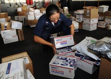 Keywords: US Navy 090108-N-2562S-004 Interior Communications Electrician 3rd Class Erica Tapia picks up a load of.jpg en PACIFIC OCEAN Jan 8 2009 Interior Communications Electrician 3rd Class Erica Tapia picks up a load of Operation Gratitude care packages in hangar bay two aboard the Nimitz-class aircraft carrier USS Theodore Roosevelt CVN 71 Theodore Roosevelt and embarked Carrier Air Wing CVW 8 are on deployment in the U S 5th Fleet area of responsibility and are focused on reassuring regional partners of the United States' commitment to security which promotes stability and global prosperity U S Navy photo by Mass Communication Specialist Seaman Andrew Skipworth/Released 2009-01-08 090108-N-2562S-004 Navy http //www navy mil/view_image asp id 67875 U S Navy photo by Mass Communication Specialist Seaman Andrew Skipworth PD-USGov-Military-Navy Aboard USS Theodore Roosevelt CVN-71 Interior Communications Electrician Care packages |