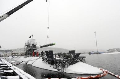 Keywords: US Navy 090115-N-8467N-003 A MK 48 ADCAP torpedo is unloaded from the fast-attack submarine USS Annapolis (SSN 760).jpg en GROTON Conn Jan 15 2009 A MK 48 ADCAP torpedo is unloaded from the fast-attack submarine USS Annapolis SSN 760 by Sailors from the Submarine Base New London weapons department during a snowstorm U S Navy photo by John Narewski/Released 2009-01-15 090115-N-8467N-003 Navy http //www navy mil/view_image asp id 68129 U S Navy photo by John Narewski PD-USGov-Military-Navy Naval Submarine Base New London USS Annapolis SSN-760 |