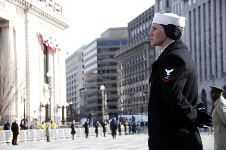 | Keywords: US Navy 090120-A-3085H-079 Service members forming part of the honor cordon line Pennsylvania Avenue during the 2009 Inaugural Parade.jpg  en WASHINGTON Jan 20 2009 A Navy petty officer serves as part of the honor cordon line Pennsylvania Avenue during the 2009 Inaugural Parade in Washington More than 5 000 men and women in uniform are providing military ceremonial support to the 2009 Presidential Inauguration a tradition dating back to George Washington's 1789 Inauguration U S Army photo by 1st Sgt Robert Hyatt/Released 2009-01-20 090120-A-3085H-079 Navy http //www navy mil/view_image asp id 68311 U S Army photo by 1st Sgt Robert Hyatt PD-USGov-Military-Navy Barack Obama 2009 presidential inaugural parade |