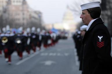 | Keywords: US Navy 090120-N-5386H-552 Sailors forming part of the honor cordon line Pennsylvania Avenue during the 2009 Inaugural Parade.jpg  en WASHINGTON Jan 20 2009 Sailors form part of the honor cordon line Pennsylvania Avenue during the 2009 Inaugural Parade in Washington More than 5 000 men and women in uniform are providing military ceremonial support to the 2009 Presidential Inauguration a tradition dating back to George Washington's 1789 Inauguration U S Navy photo by Mass Communication Specialist 1st Class Michael Heckman/Released a 2009-01-20 090120-N-5386H-552 Navy http //www navy mil/view_image asp id 68324 U S Navy photo by Mass Communication Specialist 1st Class Michael Heckman PD-USGov-Military-Navy Barack Obama 2009 presidential inaugural parade |