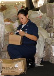 Keywords: US Navy 090127-N-2562S-005 Interior Communications Electrician 3rd Class Erica Tapia assists in sorting mail during a mail working party aboard the aircraft carrier USS Theodore Roosevelt (CVN 71).jpg en AT SEA Jan 27 2009 Interior Communications Electrician 3rd Class Erica Tapia assists in sorting mail during a mail working party aboard the aircraft carrier USS Theodore Roosevelt CVN 71 Theodore Roosevelt and Carrier Air Wing CVW 8 are conducting operations in the U S 5th Fleet area of responsibility U S Navy photo by Mass Communication Specialist Seaman Apprentice Andrew Skipworth/Released 2009-01-27 090127-N-2562S-005 Navy http //www navy mil/view_image asp id 68368 U S Navy photo by Mass Communication Specialist Seaman Apprentice Andrew Skipworth PD-USGov-Military-Navy Images from US Navy location AT SEA Interior Communications Electrician |