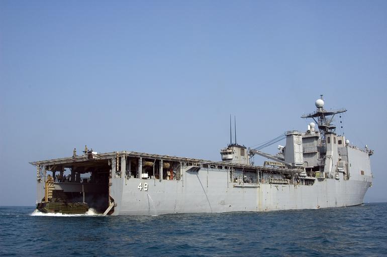 Keywords: US Navy 090213-N-1251W-020 An amphibious assault vehicle assigned to the 31st Marine Expeditionary Unit (MEU) launches from the well-deck of the amphibious dock landing ship USS Harpers Ferry (LSD 49) during Exercise Cobra Gold.jpg en UTAPHAO Thailand Feb 13 2009 An amphibious assault vehicle assigned to the 31st Marine Expeditionary Unit MEU launches from the well-deck of the amphibious dock landing ship USS Harpers Ferry LSD 49 during Exercise Cobra Gold 2009 Harpers Ferry and the 31st MEU are taking part in Exercise Cobra Gold an annual Thailand and U S co-sponsored joint coalition multinational military exercise designed to train a Thai U S and Singaporean Coalition Task Force The exercise will also include humanitarian civic action projects with participating nations from Indonesia Japan Singapore Thailand and the U S U S Navy photo by Mass Communication Specialist 2nd Class Matthew R White/Released 2009-02-13 090213-N-1251W-020 Navy http //www navy mil/view_image asp id 69257 U S Navy photo by Mass Communication Specialist 2nd Class Matthew R White PD-USGov-Military-Navy U-Tapao Royal Thai Navy Airfield Cobra Gold 2009 Amphibious Assault Vehicle well deck launches General views of USS Harpers Ferry LSD-49