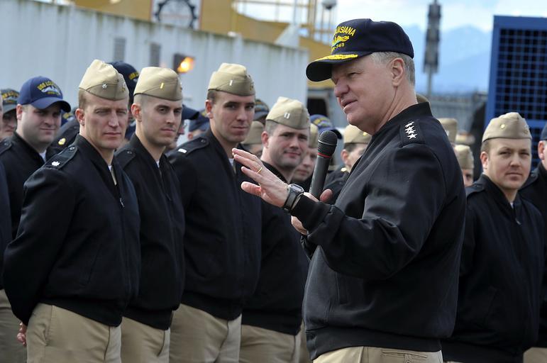 | Keywords: US Navy 090217-N-8273J-214 Chief of Naval Operations (CNO) Adm. Gary Roughead speaks with the blue and gold crewmembers of the ballistic-missile submarine USS Louisiana (SSBN 743).jpg  en BANGOR Wash Feb 17 2009 Chief of Naval Operations CNO Adm Gary Roughead speaks with the blue and gold crewmembers of the ballistic-missile submarine USS Louisiana SSBN 743 during an all hands call while visiting Naval Base Kitsap Roughead is in Navy Region Northwest visiting various naval facilities to get a first-hand look at the work being done by Sailors and Navy Civilians in the region U S Navy photo by Mass Communication Specialist 1st Class Tiffini M Jones/Released 2009-02-17 090217-N-8273J-214 Navy http //www navy mil/view_image asp id 68883 U S Navy photo by Mass Communication Specialist 1st Class Tiffini M Jones PD-USGov-Military-Navy Images from US Navy location BANGOR Wash Gary Roughead in 2009 |