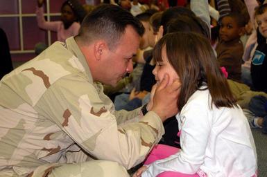 Keywords: US Navy 090223-N-2425L-001 Electronics Technician 2nd Class Sam HerediaPerez greets his 7-year-old daughter during a special reunion at Dinsmore Elementary School.jpg en JACKSONVILLE Fla Feb 23 2009 Electronics Technician 2nd Class Sam HerediaPerez greets his 7-year-old daughter during a special reunion at Dinsmore Elementary School HerediaPerez assigned to the naval Air Station Jacksonville Air Operations Ground Electronic Maintenance Division has been deployed to Afghanistan as an individual augmentee for the past nine months U S Navy photo by Kaylee LaRocque/Released 2009-02-23 090223-N-2425L-001 Navy http //www navy mil/view_image asp id 69217 U S Navy photo by Kaylee LaRocque PD-USGov-Military-Navy Images from US Navy location Jacksonville Florida Electronics Technician |
