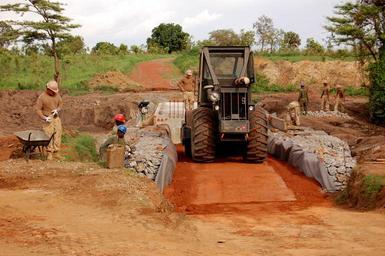 Keywords: US Navy 090418-N-1057H-037 Sailors assigned to Naval Mobile Construction Battalion (NMCB) 11, Detachment Horn of Africa and members of the Ugandan People's Defense Force build the Welela low-water crossing bridge.jpg en AROMO Uganda April 18 2009 Sailors assigned to Naval Mobile Construction Battalion NMCB 11 Detachment Horn of Africa and members of the Ugandan People's Defense Force build the Welela low-water crossing bridge The original bridge was destroyed during heavy rainfall and NMCB-11 is building a new bridge for the local population NMCB-11 is deployed for the first time since being re-established in 2007 and is providing mission support in the Combined Joint Task Force-Horn of Africa area of responsibility U S Navy photo by Mass Communication Specialist 2nd Class Erick S Holmes/Released 2009-04-18 090418-N-1057H-037 Navy http //www navy mil/view_image asp id 71496 U S Navy photo by Mass Communication Specialist 2nd Class Erick S Holmes PD-USGov-Military-Navy Construction in Uganda People of the United States Navy Ochre |