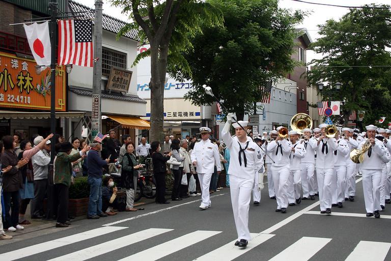 Keywords: US Navy 090516-N-8418M-365 Musician 1st Class Jason Gromacki leads the marching band of the U.S. 7th Fleet Band during a parade at the 70th Shimoda Black Ship Festival.jpg en SHIMODA Japan May 16 2009 Musician 1st Class Jason Gromacki leads the marching band of the U S 7th Fleet Band during a parade at the 70th Shimoda Black Ship Festival The band and USS McCampbell DDG 85 visited Shimoda to support the festival which commemorated the 1854 landing of Commodore Matthew Perry and his crew at Shimoda and the subsequent opening of trade between Japan and the West U S Navy photo by Musician 2nd Class Kenneth McLaughlin/Released 2009-05-16 090516-N-8418M-365 Navy http //www navy mil/view_image asp id 71734 U S Navy photo by Musician 2nd Class Kenneth McLaughlin PD-USGov-Military-Navy Images from US Navy location SHIMODA Japan Aboard USS McCampbell DDG-85