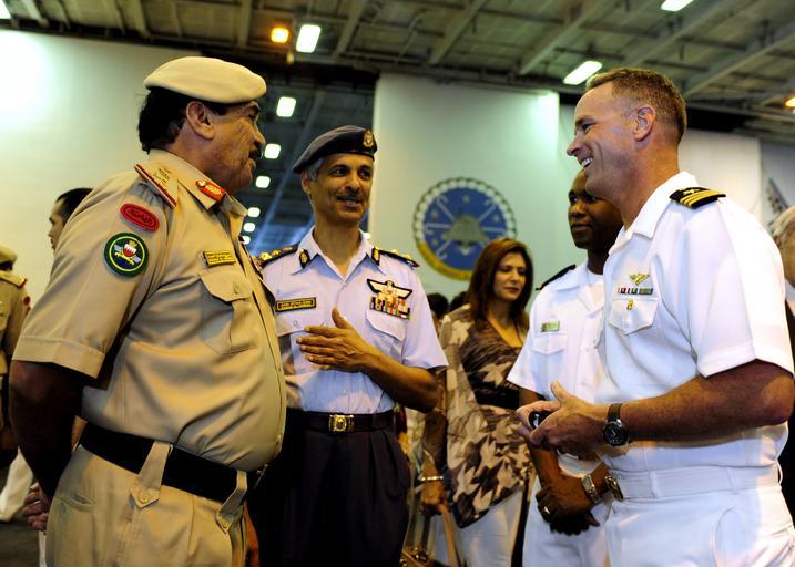 | Keywords: US Navy 090517-N-6604E-274 Cmdr. Mark Light and Ensign Jermaine Jemmott speak with Bahraini military officials during a reception aboard the aircraft carrier USS Dwight D. Eisenhower (CVN 69).jpg  en MIDDLE EAST May 17 2009 Cmdr Mark Light and Ensign Jermaine Jemmott speak with Bahraini military officials during a reception aboard the aircraft carrier USS Dwight D Eisenhower CVN 69 during an historic port visit to the Kingdom of Bahrain Dwight D Eisenhower is the first Nimitz-class aircraft carrier to dock at the newly-completed Khalifa bin Salman Port The Eisenhower Carrier Strike Group is deployed to the U S 5th Fleet area of responsibility as part of a scheduled deployment supporting Operations Enduring Freedom and Iraqi Freedom as well as maritime security operations U S Navy photo by Mass Communication Specialist Seaman Bradley Evans/Released 2009-05-17 090517-N-6604E-274 Navy http //www navy mil/view_image asp id 71799 U S Navy photo by Mass Communication Specialist Seaman Bradley Evans PD-USGov-Military-Navy Middle East Aboard USS Dwight D Eisenhower CVN-69  |
