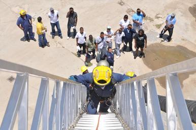Keywords: US Navy 090527-N-0475R-157 A Guantanamo Bay Fire Department fire fighter climbs a ladder during the aerial climb part of the agility test course administered by the Guantanamo Bay Fire Department.jpg en GUANTANAMO BAY CUBA May 27 2009 A Guantanamo Bay Fire Department fire fighter climbs a ladder during the aerial climb part of the agility test course administered by the Guantanamo Bay Fire Department The aerial climb is used to determine if participants can deal with climbing to tall heights The agility test is designed to demonstrate the physical ability of those who wish to become potential firefighters U S Navy photo by Mass Communication Specialist 3rd Class Ace Rheaume/Released 2009-05-27 090527-N-0475R-157 Navy http //www navy mil/view_image asp id 72198 U S Navy photo by Mass Communication Specialist 3rd Class Ace Rheaume PD-USGov-Military-Navy Fire prevention at the Guantanamo Bay Naval Base Firefighting ladders 2008 at the Guantanamo Bay Naval Base