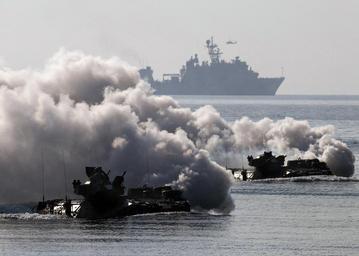| Keywords: US Navy 090701-N-1722M-094 Amphibious assault vehicles transporting U.S. Marines and soldiers from the Malaysian Army 9th Royal Malay Regiment pass the amphibious dock landing ship USS Harpers Ferry (LSD 49).jpg en TERENGGANU Malaysia July 1 2009 Amphibious assault vehicles transporting U S Marines and soldiers from the Malaysian Army 9th Royal Malay Regiment pass the amphibious dock landing ship USS Harpers Ferry LSD 49 as they lay a smoke screen during a combined amphibious landing exercise on the final day of Cooperation Afloat Readiness and Training CARAT Malaysia 2009 CARAT is a series of bilateral exercises held annually in Southeast Asia to strengthen relationships and enhance the operational readiness of the participating forces U S Navy photo by Mass Communication Specialist 1st Class Michael Moriatis/Released 2009-07-01 090701-N-1722M-094 Navy http //www navy mil/view_image asp id 73363 U S Navy photo by Mass Communication Specialist 1st Class Michael Moriatis PD-USGov-Military-Navy Images from US Navy location TERENGGANU Malaysia Amphibious Assault Vehicle Smoke screens Aboard USS Harpers Ferry LSD-49 |
